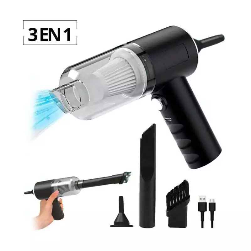 Dile adiós al polvo y la suciedad con la Aspiradora Portátil 3 en 1, tu mejor aliada para mantener tu auto y espacios pequeños impecables en segundos.