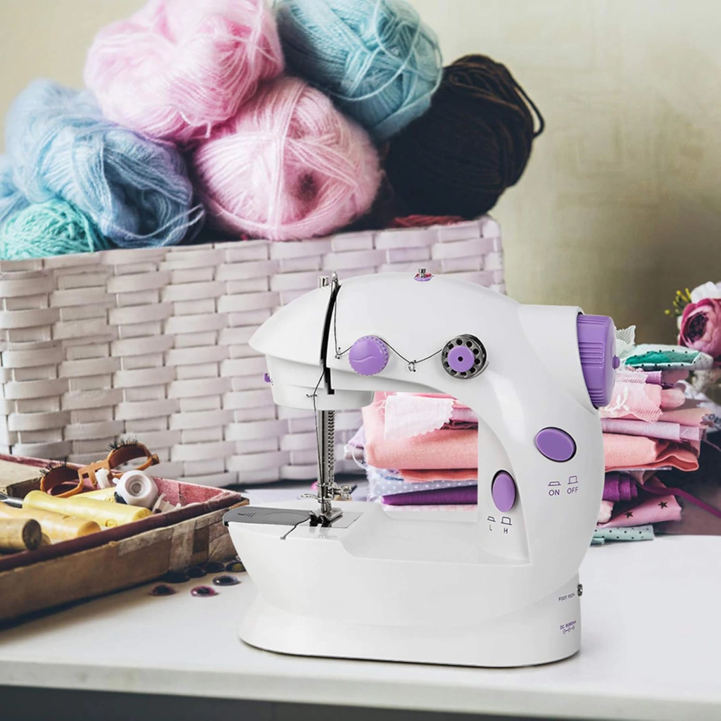 La Mini Máquina de Coser Suono HOG0054 en blanco y violeta es tu aliada ideal para proyectos rápidos y reparaciones en casa o de viaje. Su diseño compacto y portátil, junto con un motor de dos velocidades, te brinda control total para coser diversos tejidos como lino, algodón y jean liviano. Incluye pedal, bobinas y accesorios esenciales para empezar a usarla al instante. ¡Calidad y practicidad en un solo producto!